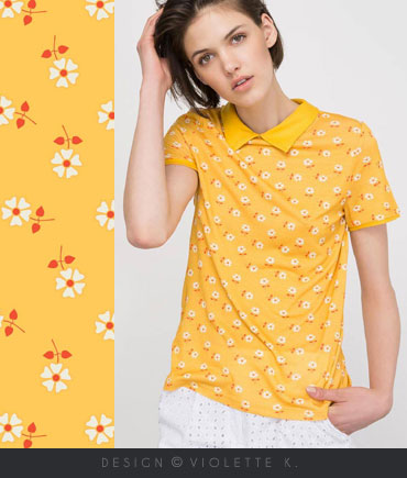 Pour créer un allover, je réalise le motif sur papier ou directement par ordinateur en m'inspirant des tendances actuelles et à venir.